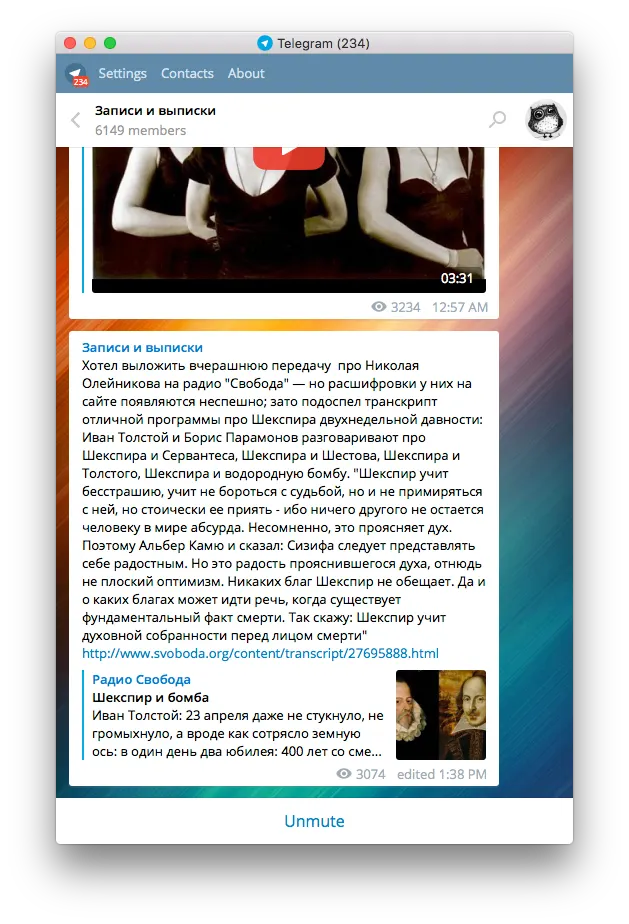 Литература и жизнь — оригинальный канал, в котором много ссылок и фото, а простыней текста совсем чуть-чуть.