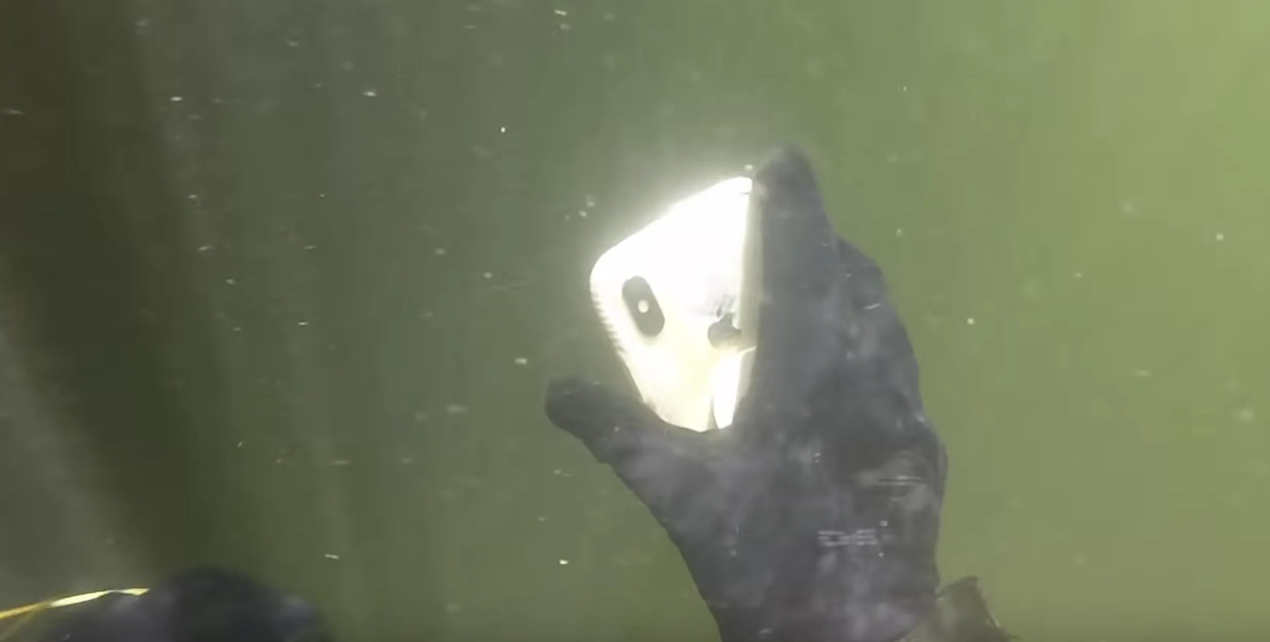 Красивая история, демонстрирующая качество смартфонов Apple. Ютубер Man + River нашел флагман на дне реки во Флориде – у смарта треснуло защитное стекло, но в целом он выглядел нормально.