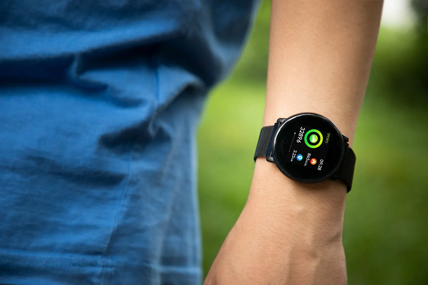 У Uwatch круглый цветной дисплей-циферблат на 1,33 дюйма (разрешение неизвестно) с защитным стеклом 2.5D. Судя по промофото, китайцы подрезали у Apple Watch идею с кругами активности (ходьба, упражнения, сон и прочее).
