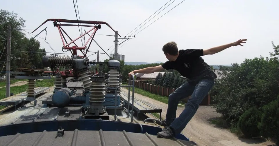 Для справки, напряжение в контактном проводе поезда составляет 27500 Вольт. Если что, человек имеет высокие шансы умереть уже от 36 Вольт. И обычно умирает.