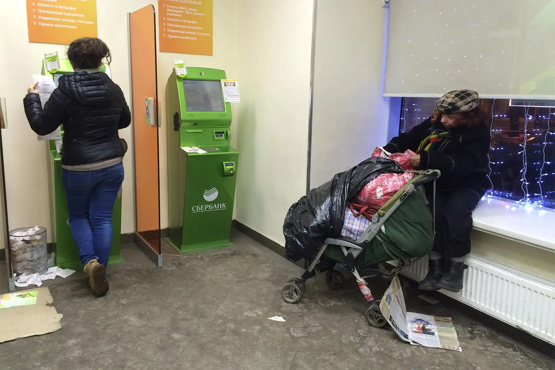 Теперь «Сбербанк» выгоняет бомжей на мороз. Они слишком обнаглели