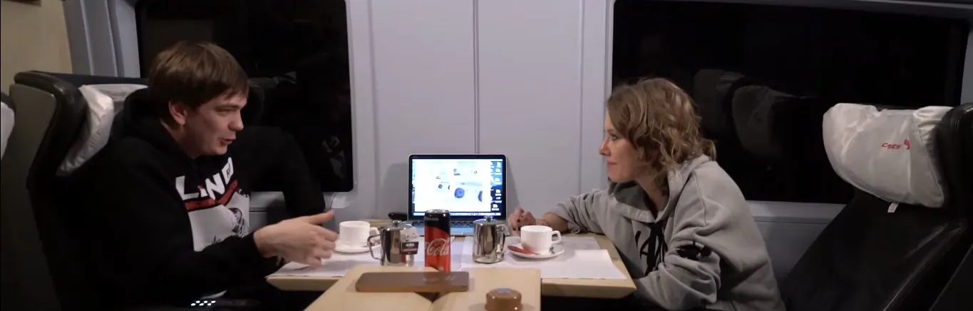 Преимущество Собчак в грамотной подготовке и планировании. Она удивительно точно строит не только вопросы, но и сценарий видео. Её формат – это не два стула перед камерой и не «по домам», а своеобразное роад-интервью. Она то в самолёте с Парфёновым, то в машине со Светлаковым, то в «Сапсане» с Гнойным. Эти дорожные беседы развивают основное действие, которое чаще всего сопровождается определённой «экскурсией» и завершает катарсисом. В прошлых выпусках схема работала неидеально, но в этот раз драматургия выстроена блестяще.