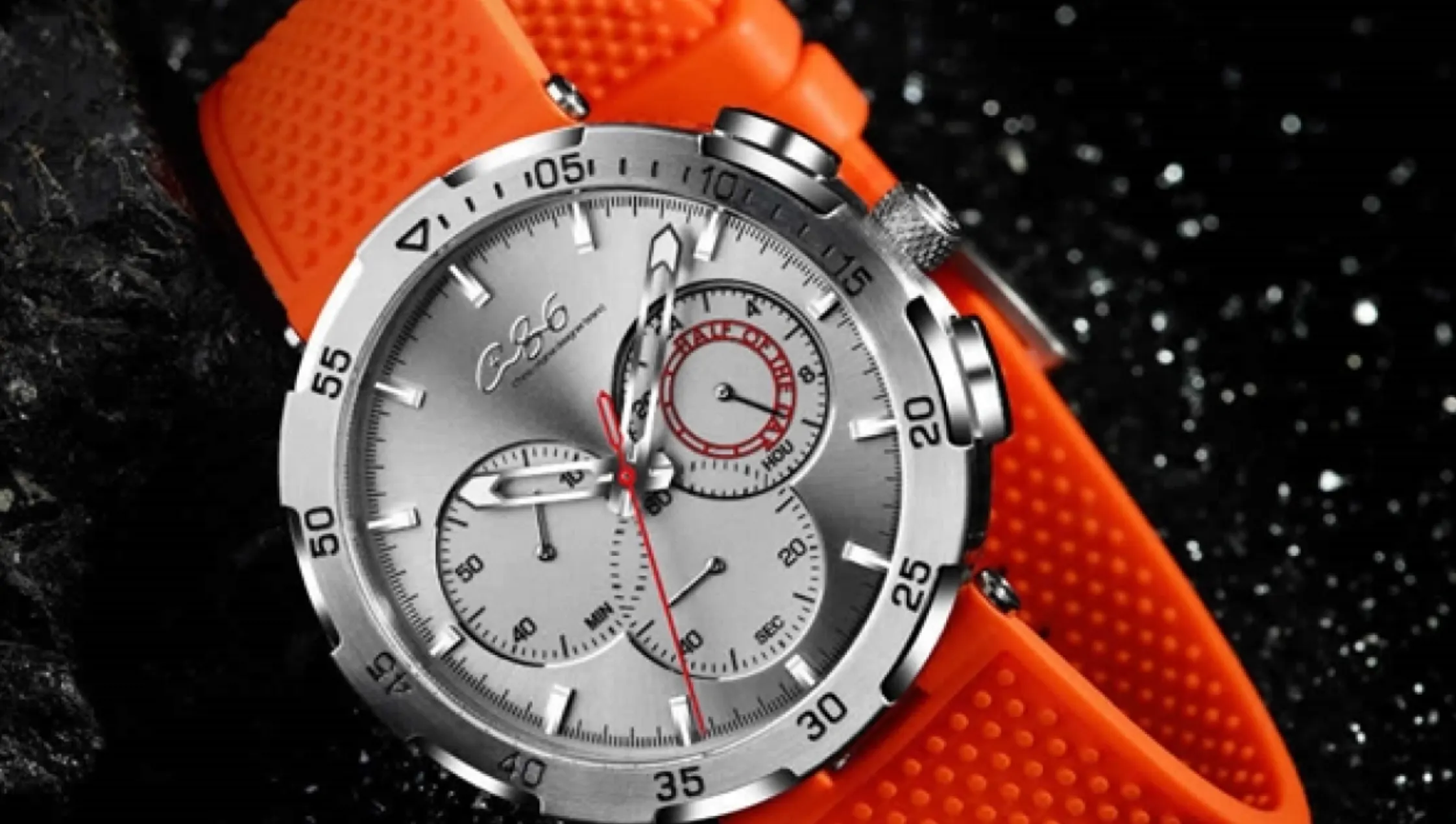 C+86 – часы с хронографом. Здесь есть три компактных циферблата, один выполняет роль дополнительного таймера, второй замеряет минуты, третий – часы. На основном циферблате расположены часовая, минутная и секундная стрелки, часовые отметки сделаны в виде делений, которые светятся в темноте.