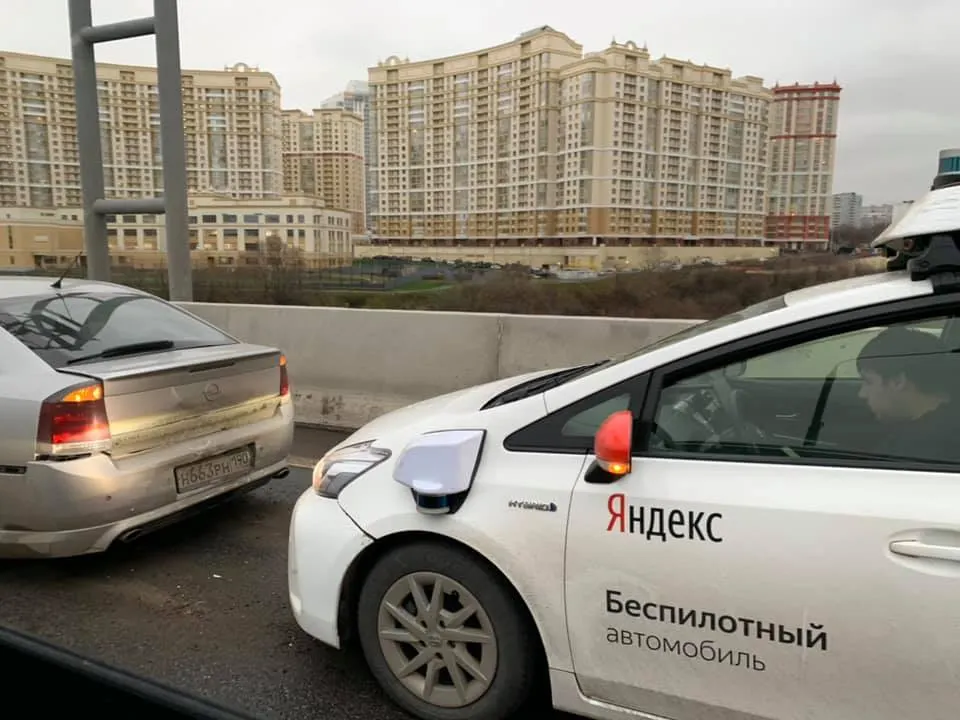 Беспилотный автомобиль «Яндекса» попал в ДТП в Москве. Водитель беспилотника (сейчас всё объясним) не успел затормозить перед вставшей перед ним машиной.
