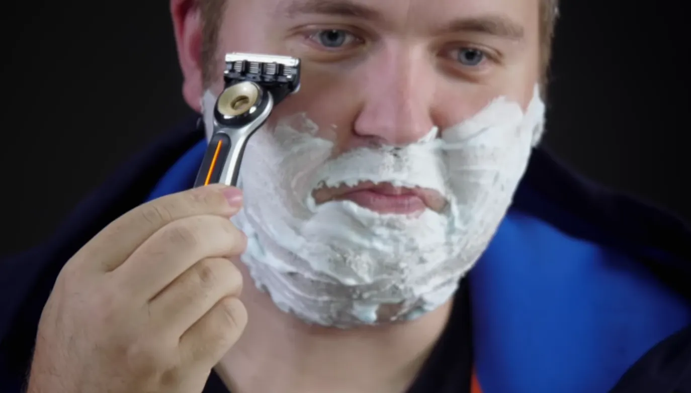 На видео Вилса сперва убрал торчащие концы бороды тримером, а потом трижды прошёлся по лицу рекламируемой бритвой (с подогревом). Пожалуйста – вот результат.