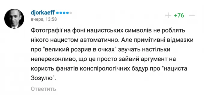 По ситуации уже высказался один из мастеров жирного троллинга на Руси. Василий Уткин заявил, что не поддерживает любые травли, но считает Зозулю «конченым мудаком». «Наверняка хороший товарищ, послушный сын и, не сомневаюсь, патриот», – заключил Вася.