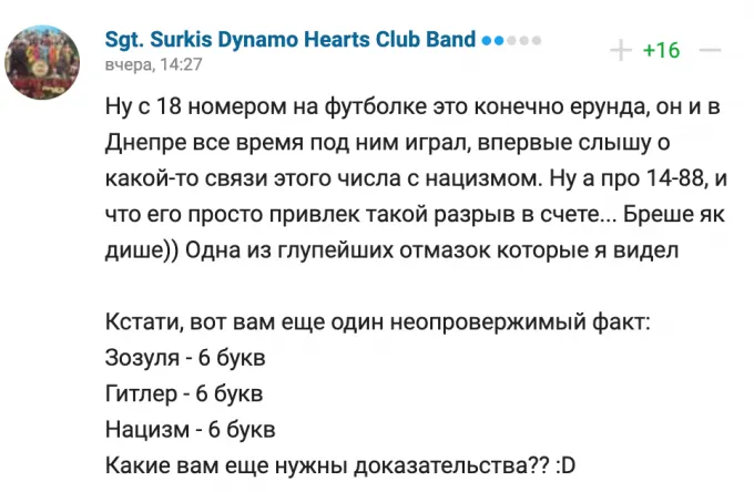 Атлета обвинили в поддержке фашизма. Дело в том, что 14:88 (точнее, 14/88) – традиционное приветствие неонацистов. Число 14 отсылает к лозунгу белого сепаратиста Дэвида Лэйна, 88 – закодированное приветствие «Heil Hitler!» Игрок ещё был одет в футболку с номером 18 (в латинском алфавите – порядковые номера инициалов Гитлера) – неужели совпадение?