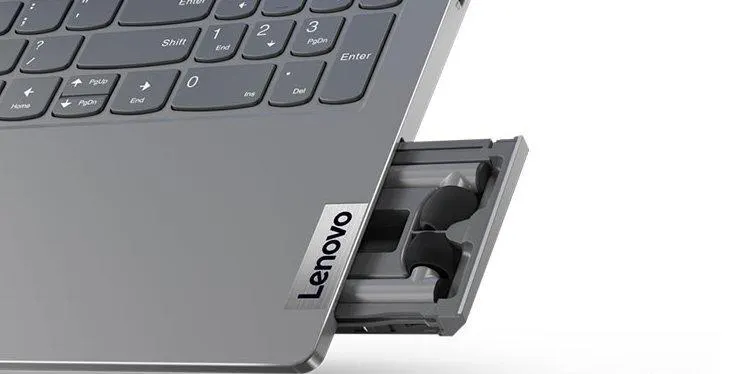 Lenovo презентовала лэптоп Thinkbook 15. Это модель, главная фишка которой сразу же бросается в глаза — TWS-гарнитура, встроенная в корпус компьютера.