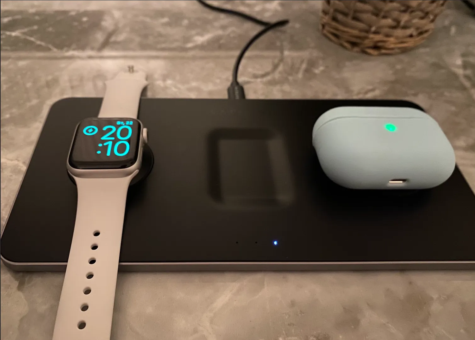 Satechi Trio Wireless Charging Pad – стильный коврик для зарядки всех трех главных гаджетов: часов, телефона и наушников. А еще это аналог того самого AirPower, с которым не справилась Apple. Механизм работы реально элементарен: надо подключить док-станцию к розетке, поставить ее на прикроватную тумбочку, а затем перед сном складывать девайсы на подзарядку.