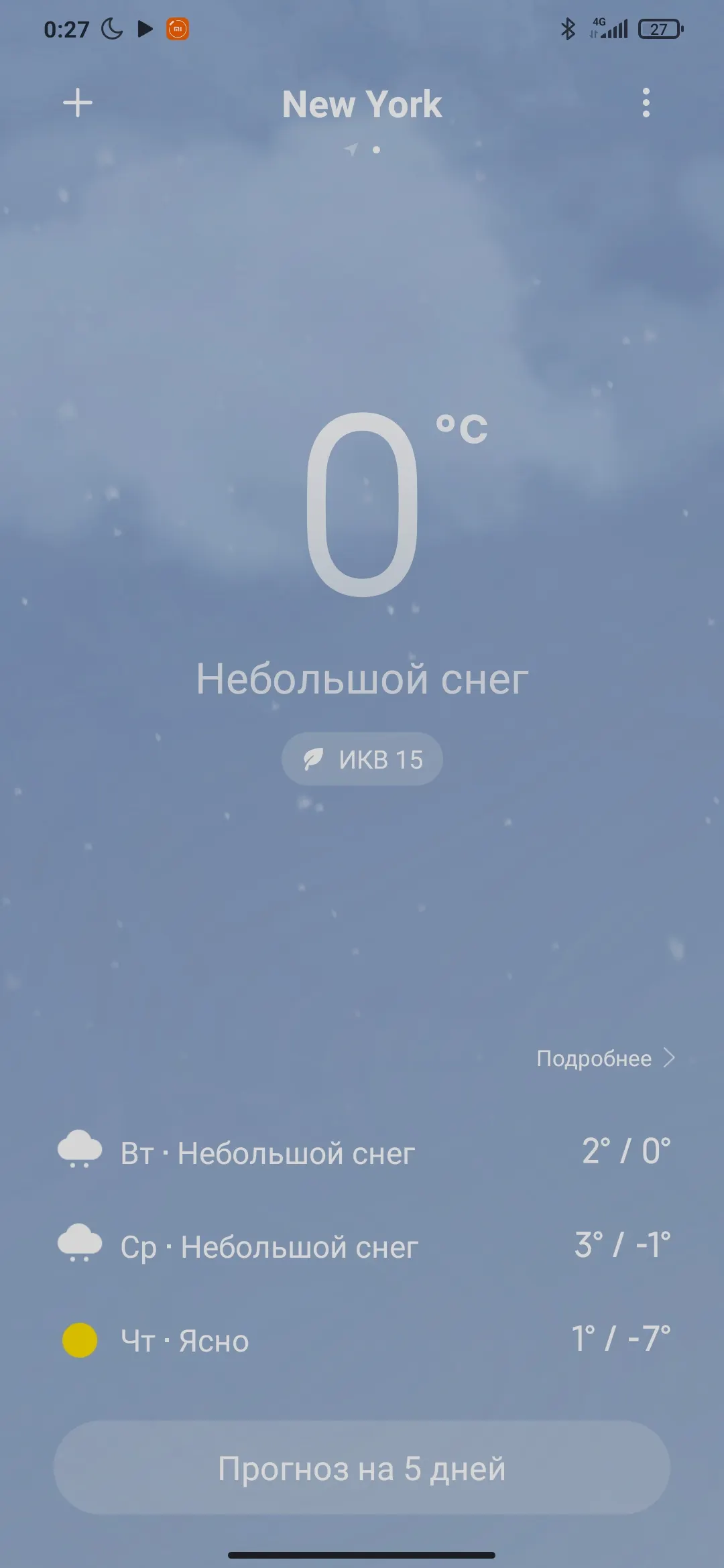 По сравнению с MIUI 11, в 12-й версии сильно прокачалось приложение «Погода» — теперь на заднем фоне проигрывается анимация, связанная с погодой в вашем городе. Например, если за окном идет снег, то в аппе появится изображение снежного неба. Выглядит завораживающе.