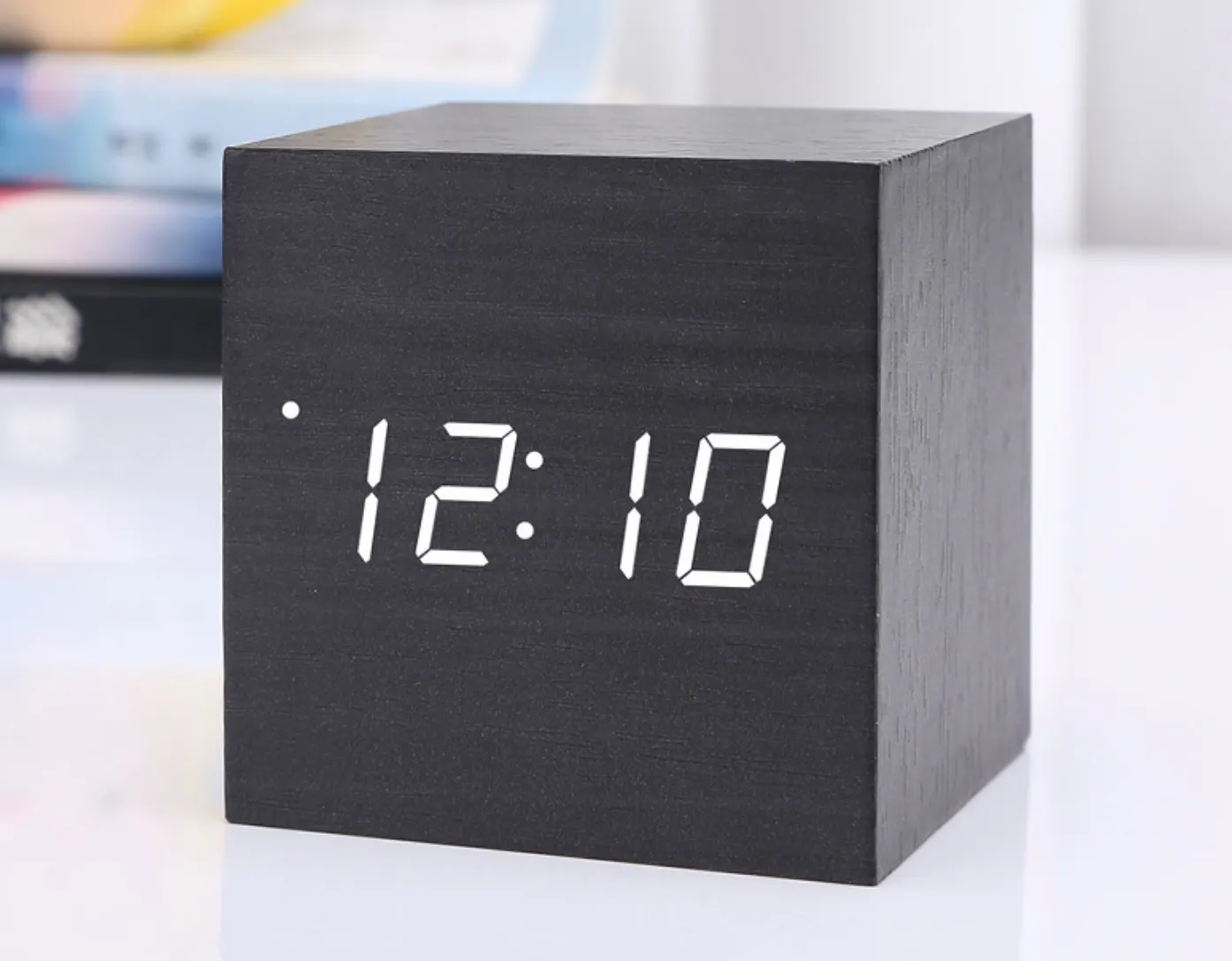 Дерево четко смотрится в любом интерьере: это можно увидеть не только на рекламных фотках, но и в отзывах. У часиков есть приятное дополнение — встроенный термометр. Удобно если вы отслеживаете температуру в своей квартире. Будильник идет в разных корпусах и цветах, но мой фаворит — черный корпус с белыми цифрами.