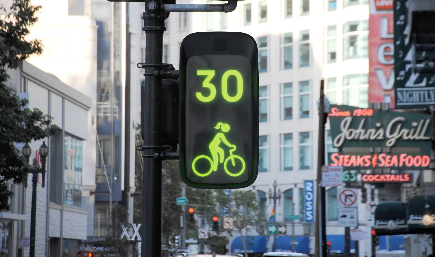 Никаких дополнительных секций, на которые обычно выводятся стрелки направления движения, нет. Вместо этого они демонстрируются в нижней части светофора. На светофоры можно выводить обратный отсчет для переключения сигнала.