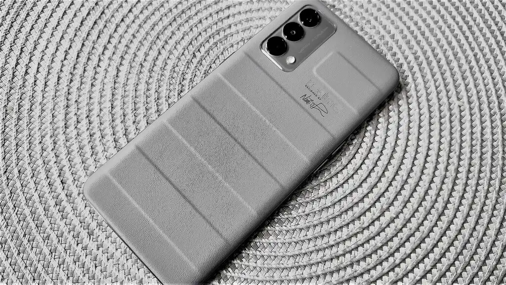 Чем крут «убийца» флагманов? Во-первых, смартфон получил эксклюзивный дизайн — задняя часть корпуса выполнена из экокожи и внешне напоминает чемодан для поездок. Во-вторых, у него при себе 120-герцовый AMOLED-экран на 6,43 дюймов с разрешением Full HD+ и пиковой яркостью 1000 нит.