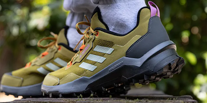 Смущает белый цвет? Тогда взгляните на оливково-зеленые adidas Terrex AX 4 GTX. Это треккинговые кроссовки с надежнейшей резиновой подошвой от Continental – компании, занимающейся разработкой шин. Мембрана GoreTex защитит обувь от попадания влаги, а дизайн лишь добавляет этим кроссовкам брутальности.
