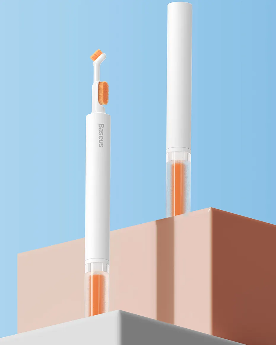 Baseus Cleaning Brush — компактнейший инструмент с двумя щётками и валиком для очистки труднодоступных участков техники от грязи и пыли. Изначально айтем производился с учётом AirPods и iPhone. Компания рассчитала толщину ворсинок и площадь мелкой щёточки, чтобы ей спокойно можно было вычистить мелкий мусор из разговорного динамика смартфона или наушников.
