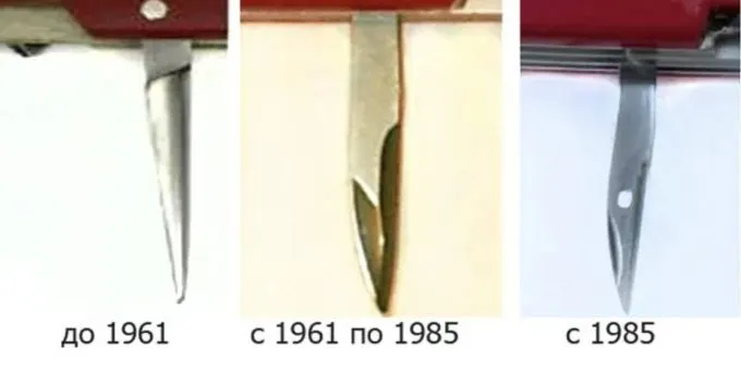 До 1985 года ножики фирмы Victorinox — самого известного производителя перочинных ножей — имели обычное укороченное лезвие. Так как их поставляли армии, солдаты использовали лезвие для очистки оружия.