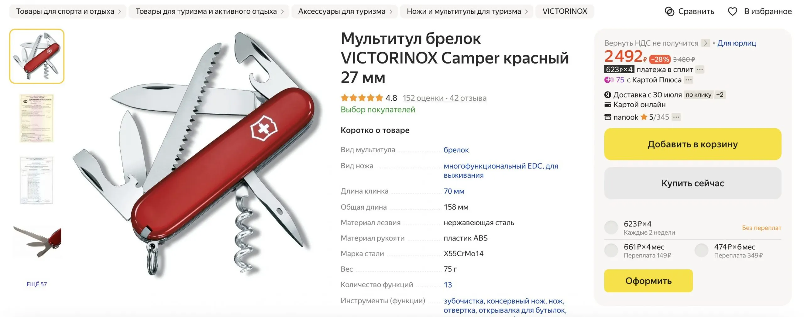 Теперь вы знаете, зачем швейцарский нож имеет это необычное лезвие. Кстати, оно встречается даже в самых дешевых ножах Victorinox — например, есть у этой модели за 2,5 тысячи рублей.