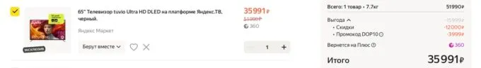 Сейчас безумно огромный Tuvio 4K Ultra HD DLED можно урвать на Яндекс Маркете за 35 991 рубль по промокоду DOP10. Также не забывайте, что многие банки предлагают кэшбэк 10%, что позволит сэкономить ещё 3,5 косаря.