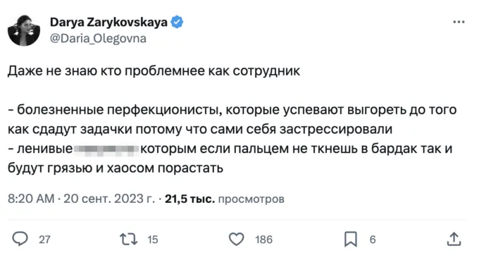 Спустя день Дарья написала, что теперь — после прочтения комментариев — не знает, какие сотрудники хуже. Основательница «Мам, купи!» не смогла выбрать между «болезненными перфекционистами» и «ленивыми ********** [пофигистами]».