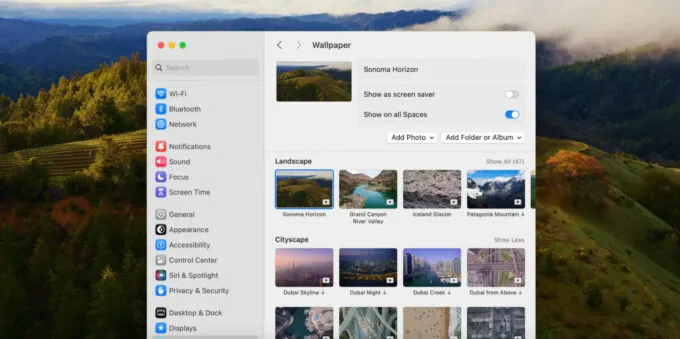 Во-первых, в новой macOS появились динамические анимированные обои — в настройках можно выбрать изображения природы, городов или достопримечательностей. Всего в наборе несколько десятков зацикленных видео. Раньше, чтобы поставить анимацию на рабочий стол, нужно было колхозить и ставить сторонние программы — теперь все это работает «из коробки».