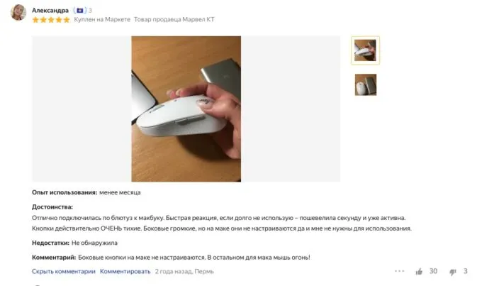 Питается мышь от Xiaomi двумя пальчиковыми батарейками, которых хватает на пару месяцев. Такое решение в разы лучше, чем встроенный аккумулятор, который уже через год начнёт деградировать, а по итогу девайс придётся утилизировать.