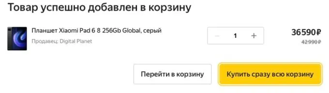 Обычно за базовую версию планшета с 6/128 ГБ памяти просят ~38 000 рублей, но сейчас на Маркете можно урвать топовый Xiaomi Pad 6 на 8/256 ГБ за 36 590 рублей и получить кэшбеком до 10% в некоторых банках.