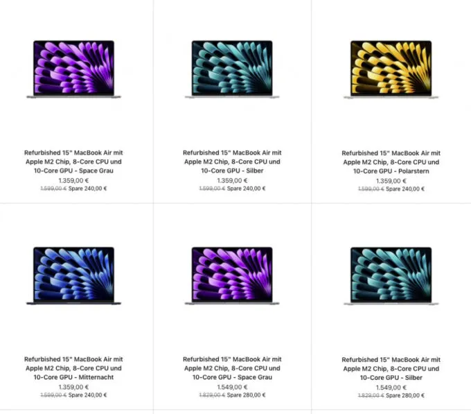 MacBook Air 15 со скидкой 15% уже могут приобрести жители Великобритании, Австрии, Бельгии, Франции, Германии, Ирландии, Голландии, Польшы и Швейцарии. Например, если обычный Mac стоит 1599 евро, то со скидкой девайс обойдется в 1359 евро.