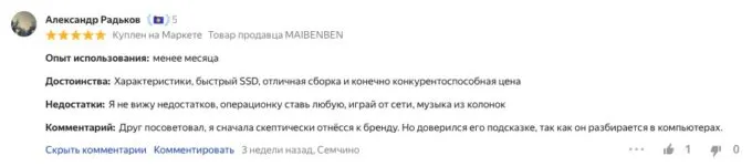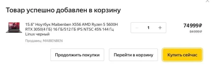 Обычно за такой конфиг Maibenben X566 просят около 87 тысяч рублей, но сейчас на Маркете его можно урвать за 74 999 рублей. Некоторые банки также готовы отсыпать жирный кэшбек в 10% за покупку на этой платформе.