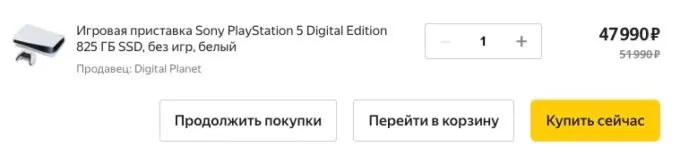 Последний аргумент — цена. Буквально завтра прайс могут скорректировать по курсу, и тогда он улетит в космос. Ну а пока на Яндекс Маркете можно заказать PlayStation 5 Digital Edition за 47 990 рублей и кэшбекнуть оттуда пару кэсов.