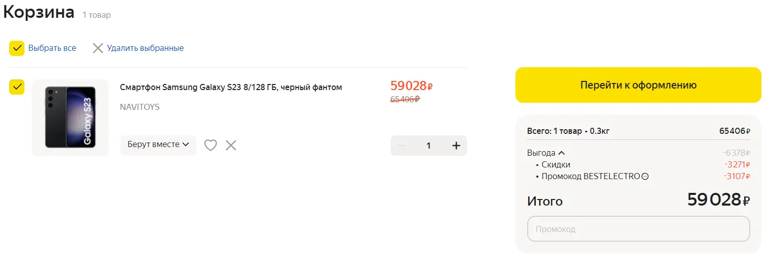 Чтобы забрать Galaxy S23 по лучшей цене, нужно перейти по этому линку, добавить в корзину лот от продавца «NAVITOYS» и оформить заказ с промокодом BESTELECTRO. Учтите, что это предложение актуально для Москвы, а в регионах прайс может немного отличаться. Если что, 10 сентября код сдохнет, поэтому не медлите с покупкой.