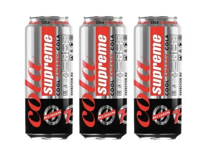 В мои руки попала баночка Supreme Cool Energy Cola. Это кола/энергетик без сахара, а белая надпись Supreme на красном фоне отсылает к молодежному бренду одежды. Уже странно, но это далеко не конец. Снадобье производит ООО «Сила Воина Евразия». Раньше я не сталкивался с продукцией этой конторы, но ее сайт говорит, что компания специализируется на энергетиках.