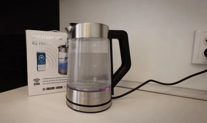 Один из самых лучших недорогих чайников на рынке. У него прозрачная стеклянная колба, так что будьте аккуратны, когда начнете его мыть: кстати, носик довольно узкий, поэтому чистить устройство изнутри не очень удобно. В ручку встроен термостат — можно выбрать, до какой температуры разогревать воду. Есть атмосферная подсветка. В комментариях жалуются на довольно громкий сигнал, зато его слышно из любой комнаты.