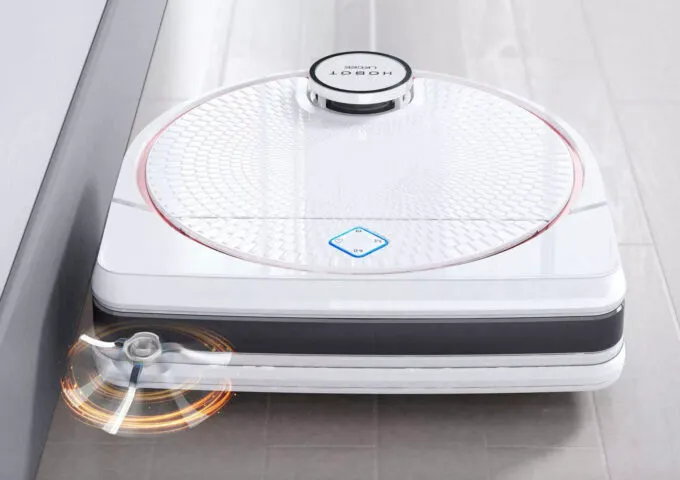 С точки зрения мытья полов это модель тоже отличилась. Во-первых, тут не простая швабра: на нее подается 500 вибраций в минуту — таким образом имитируется нажатие рук на тряпку. Во-вторых, в бак можно заливать даже плохую водопроводную воду — система сама ее очистит и дезинфицирует.