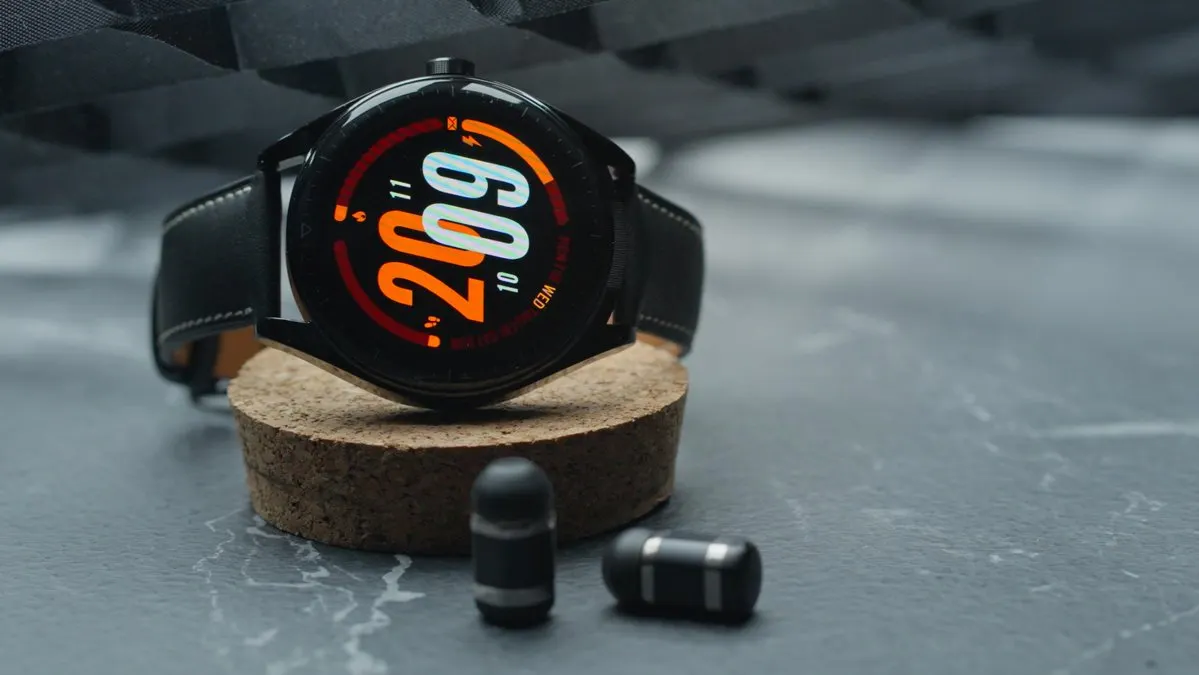 Внешне Huawei Watch Buds выглядят как классические смарт-часы бренда с корпусом из стали и кожаным ремешком. Девайс предлагает довольно крупный 1,43-дюймовый AMOLED-дисплей с разрешением 466×466 пикселей. Справа расположено колёсико, а под циферблатом — кнопка поднятия экрана.