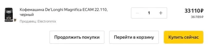 Обычно такие аппараты стоят больше 40 тысяч рублей, но сейчас на Яндекс Маркете кофемашину De’Longhi Magnifica можно приобрести всего за 33 110 рублей. Также можно получить около 3 косарей в виде кэшбека от некоторых банков.