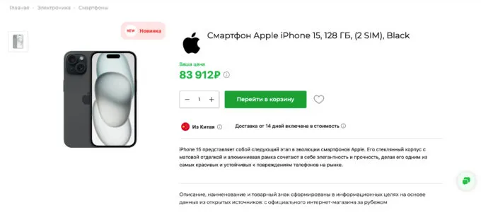 Почему это реально выгодно? Во-первых, цены на техно-новинки и прочие товары там действительно ниже, чем в обычных магазинах в России. Взять хотя бы тот же iPhone 15 — там выкуп обойдётся всего в 83 912 рублей на момент написания материала, а не по оверпрайсу, как у сетевиков. Кроме того, речь идёт о версии с двумя физическими SIM-картами — просто супер для тех, кто не может или не хочет перейти на e-SIM. Кайф!