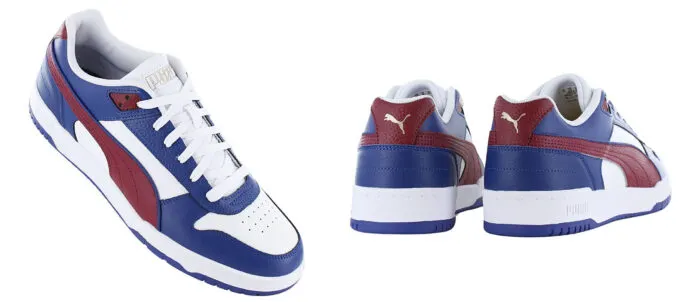 С приготовлениями закончили. Теперь к айтемам. Первый лот – синие Puma Rebound RBD GAME Low. Это кожаные кроссовки, выполненные в ретро-стиле и отсылающие нас к классическим моделям от немецкого бренда. Расцветка явно понравится тем, кто устал от скучных черных кроссовок и хочет нечто более необычное.