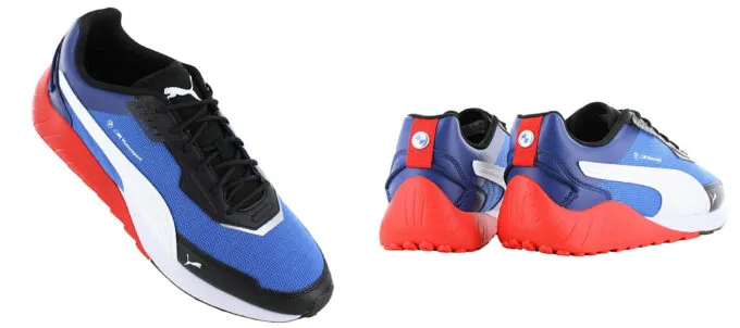 Второй айтем – кроссовки Puma BMW M Motorsport Speedfusion. Как вы уже поняли, это коллаборация немецкого бренда обуви с легендарным автоконцерном. Чем порадует эта модель? Во-первых, сочетанием сразу четырех цветов: белого, синего, черного и красного. Во-вторых, фирменной технологией Fuzionfit+. Это регулируемая шнуровка, отвечающая за фиксацию стопы и прекрасную посадку. С ней кроссовки действительно станут продолжением ваших ног.