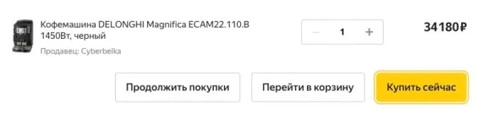Буквально в прошлом месяце цены на эту модель перевалили за 40 тысяч рублей, но уже сейчас на Яндекс Маркете кофемашину De’Longhi Magnifica S можно урвать всего за 34 180 рублей. А для большей экономии можно получить кэшбеком под 3 косаря от некоторых банков.