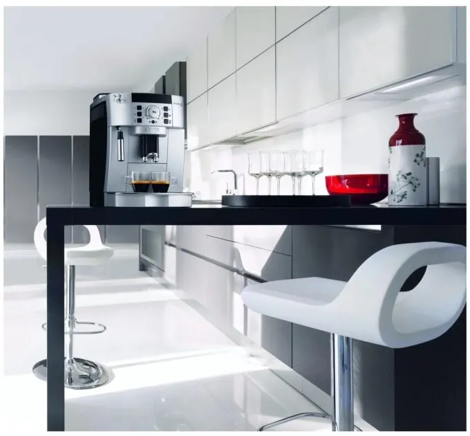 De’Longhi Magnifica S (ECAM 22.110. B) — стильная и очень качественная автоматическая кофемашина с ручным капучинатором. Отдельный респект бренду, который на протяжении долгих лет сохраняет традицию, выпуская девайсы в Италии и Румынии, а не в «лучших подвалах» Китая, как многие другие. Вы только посмотрите, как богато она выглядит. Её вполне можно поставить в гостиной, а не прятать на кухне. Пусть соседи и знакомые видят, что вы не травите свой организм растворимым порошком с примесью желудей и прочих опилок.