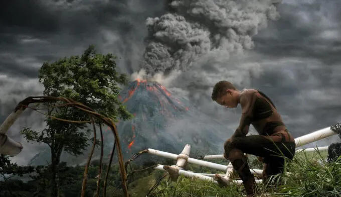 О, этот фильм М. Найта Шьямалана с Уиллом и Джейденом Смитами выдавал чушенцию небывало щедрыми порциями. Герои оказываются на уже тысячу лет как покинутой людьми Земле, где воздух стал вредным, а животные и растения намного опаснее, потому что успели эволюционировать. Да, а еще люди воюют со странными косможуками, которые в целом слепые, но чувствуют гормон страха.