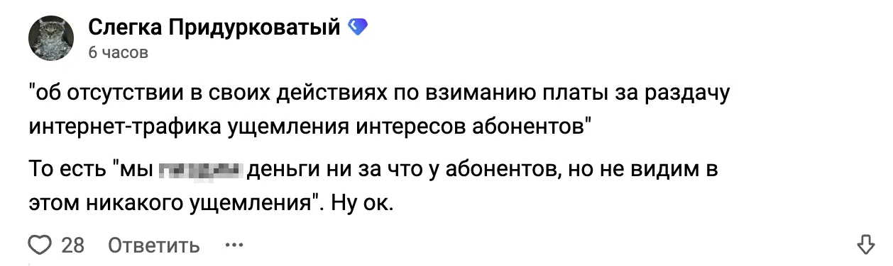 В МТС заявили ФАС, что не видят «в своих действиях по взиманию платы за раздачу трафика ущемления интересов абонентов». То есть оператор собирается и дальше брать деньги за эту услугу.