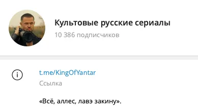 За полтора года Telegram-канал «Культовые русские сериалы» увеличился в 10 раз – с 1000 до 10000 подписчиков. На раскрутку мы потратили меньше 50 тысяч рублей: читатели приходили сами и оставались, убедившись, что мы предлагаем действительно качественный и полезный контент. О развитии канала КРС я рассказал в этом видео: