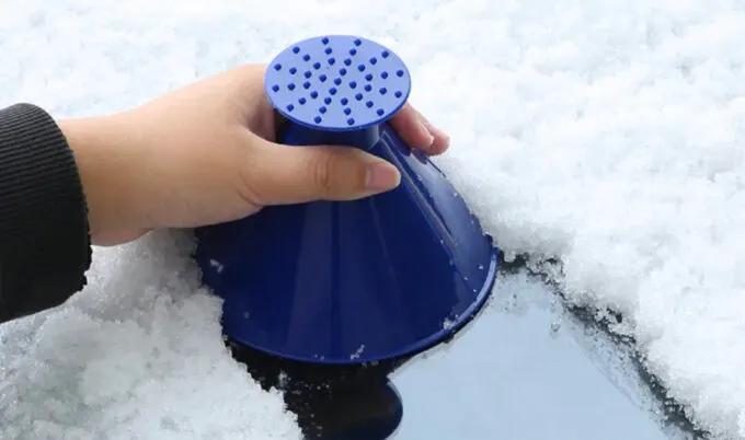 Открывает подборку необычная штука: ваш батя или знакомый автолюбитель ни за что не угадает, что этот конус предназначен для очистки стекла от снега и льда. Штуку можно использовать с двух сторон: широкая — для небольшой наледи, узкая (с точками) — для серьезного обледенения. Кроме того, можно снять узкую часть и использовать необычный скребок в качестве воронки — чтобы налить бензин или омывайку.