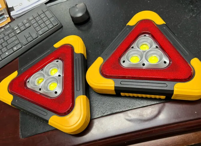Зимой тормозной путь длиннее, чем летом — из-за скользкой дороги и плохой видимости. Поэтому нужно как следует обозначить свое положение на дороге в случае аварийной остановки. Классический треугольник уступает продвинутому — кроме светоотражателей он имеет настаиваемую светодиодную подсветку. Аксессуар работает от четырех батареек АА.