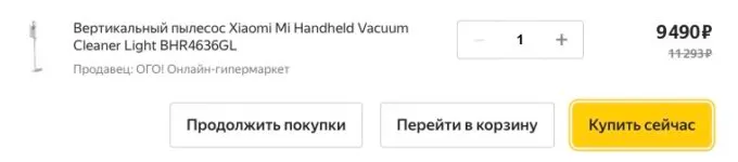 Прямо сейчас Xiaomi Mi Vacuum Cleaner Light можно забрать на Яндекс Маркете со скидкой в 16% всего за 9490 рублей и получить кэшбеком косарь при оплате картами некоторых банков.