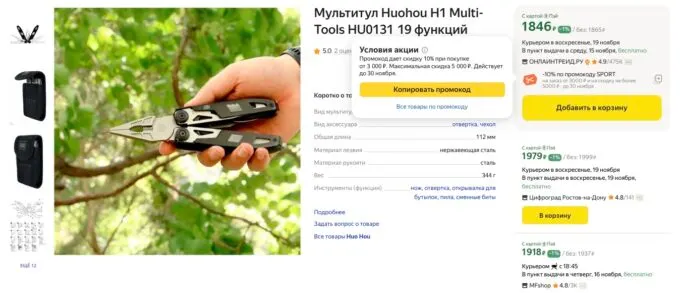 Обычно за такое ассорти инструментов просят под 5 косарей, но сейчас на Яндекс Маркете шикарный мультитул Xiaomi HuoHou H1 можно забрать всего за 1678 рублей по промокоду SPORT. А с кэшбеком от банка девайс обойдётся в 1,5 кэса.