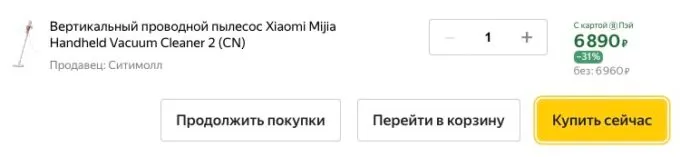Прямо сейчас Xiaomi Mijia Handheld Vacuum Cleaner 2 можно забрать на Яндекс Маркете со скидкой в 30% всего за 6960 рублей и кэшбекнуть пару тысяч рублей в некоторых банках.