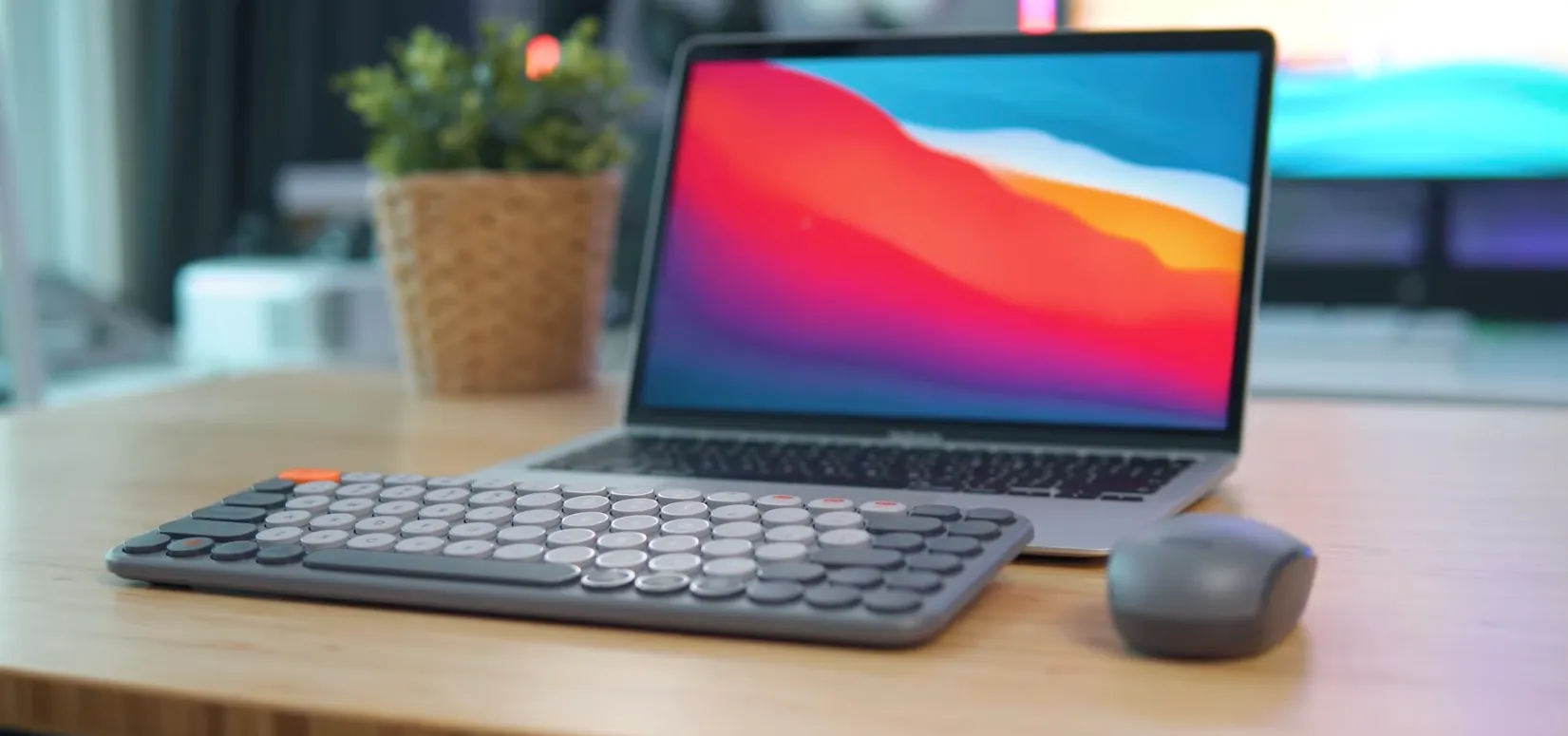 Baseus K01B Wireless Tri-Mode Keyboard — очень комфортная клава с бесшумными клавишами. Внешне этот девайс максимально близок по дизайну к легендарной Logitech K380. Тут абсолютно такие же круглые клавиши с выемкой, которые позволяют точно попадать по нужным символам при слепом наборе. Бренд предлагает две версии — компактную и полноразмерную с цифровым блоком.