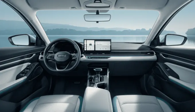 Модуль Emgrand получила кузов седан, 4-цилиндровый бензиновый двигатель объемом 1,5 литра и мощностью 122 л.с. Есть вариант с механикой и автоматической коробкой.